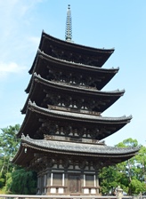「興福寺」 法相宗三大本山の一。藤原不比等が和銅三年(七一〇)厩坂寺(ウマヤザカデラ)をここに移したるに始まり、藤原氏の氏寺として、歴代の官寺なる東大寺と対峙して二大勢力の一となり、遂には堂塔の数も百宇を超ゆるに及べりといふ。中世以後には僧兵を蓄へて武威を張り、或は春日の神輿を擁して朝廷に強訴し、或は比叡山、多武峯等と相攻伐し、その間兵火に罹ることも屡なりしも、従つて近畿の最大勢力となり、嘉吉元年(一四四一)に記録せるこの寺の『官務牒疏』によれば、山城、大和、近江、摂津、伊賀の五国にたり、二百数十の社寺の上に統御の権を握りしが、享保二年(一七一七)金堂、西金堂、講堂、南円堂が罹災して伽藍の中枢を失ひ、明治に入りては諸制度一変のために全く衰弱に陥れり。