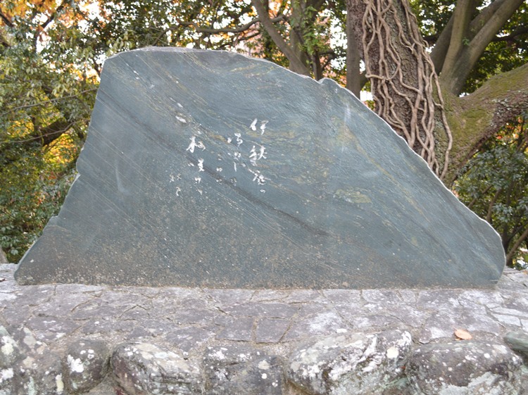 加倉井秋を(本名・昭夫)は茨城県生まれ、東京美術学校(現、芸大の前身)卒業。 国立愛媛療養所で俳句を指導、俳誌「冬草」を療養所内で発行していたが、これを東京へ引きとり主宰した。 句は万葉歌人の山部赤人が西暦736年の頃、道後温泉の丘で詠んだ長歌の「……湯はしもさはにあれども、島山のよろしき国と……伊狹庭の岡に立たして……」とあるのに因んだもの。 俳誌「冬草」の同人が昭和61年10月10日建立。