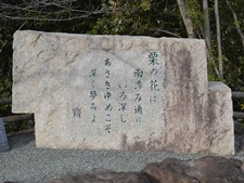 この歌碑は久保齊そのものである。氏は1939年愛媛県内子町に生まれ、中央大学卒。愛媛新聞社入社後の小説「海」が太宰治賞候補に選ばれ脚光をあびた。然し氏は、更に大きい夢、短歌の革新をめざし、歌誌「水天(かこ)」を創刊。ついで「にぎたづ」主宰となり、文壇、歌壇から絶大の期待を寄せられつつ、93年2月19日逝去された。嗚呼19日は正岡子規の忌日であった。 歌碑建立は氏を敬慕する400余名の浄財によった。 ここは萬葉集の山辺赤人の歌伊佐爾波の名の聖地、額田王の熟田津の見える丘。氏はここで萬葉人や師友と語りあっている。その聲が聞こえてくる。