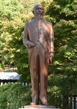 「汽笛一声新橋を はや我が汽車は離れたり」建樹が作詞した「鉄道唱歌」の冒頭のこのメロデイーを知らぬ人はないであろう。明治、大正の古きよき時代、幼なかりし頃の素朴な童心をよみがえさせられる懐かしい歌の一つである。 大和田建樹は安政4年(1857年)、宇和島市丸之内に生まれた。 幼少の頃より藩校に学んだが、学才すぐれ、14歳の時に藩公に召されて四書を進講するなど、早くも国文学者としての萌芽をあらわしている。若くして広島に遊学して英学を修め、ついで上京、さらに研鑽を積んで、ついに東京帝国大学講師、東京高等師範学校教授等を歴任した。 後に職を辞してからは、専らその広範な学識を駆使して多彩な作家活動がはじまるのである。種々の国文学の著作をはじめとし、作歌、作詞、紀行文、謡曲の註解、辞典編纂にまで及び、特に旅を愛して、自然のうつろいに人生のあわれをこめて詠んだ和歌は、実に1300余首となっている。旅を愛した建樹は、また故郷を懐しむ望郷の人でもあった。生涯たびたび帰郷してふるさとの詩歌を作っている。宇和島駅頭の「詩碑」の一面には、その一編が 刻まれ、彼の望郷の情がしのばれる。 わがふる里の城山に 父と登りてながめたる 入江の波の夕げしき 忘れぬ影は今もなお 『散歩唱歌』 明治43年(1910年)10月1日東京で病死、行年54歳。墓は東京の青山墓地にある。