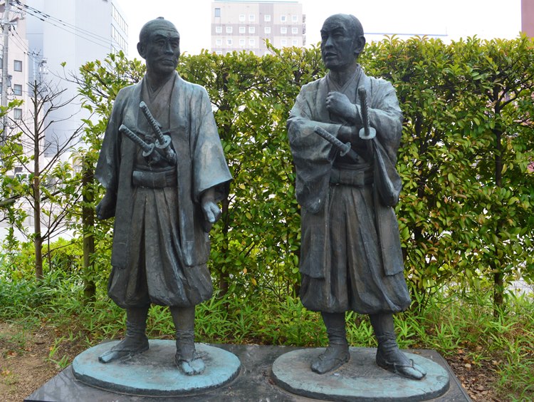 平成9年(1997年)4月、建立。水島正博制作。 平成13年(2001年)6月、佐々木小次郎の像設置。 |