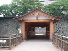 ここは、福井城の本丸跡で、周囲の内堀は往時のままです。福井城は慶長6年〜11年(1601〜06)に徳川家康の次男、結城秀康によって築城されました。秀康時代の福井城の建物は寛文9年(1669年)に焼失してしまいました。 藩の権威を象徴していたのが本丸の北西隅に聳えていた天守で、高さが約30mという壮大な建物でした。中央には藩政において最も重要な本丸御殿がありました。北東・南東・南西の各隅には3つの櫓が建っていました。南側の御本城橋から本丸への正式な通路で、この橋を渡ると、本丸の正門である瓦御門がありました。西側には屋根付きの御廊下橋もかかっていました。現在の御廊下橋は平成20年に資料に基づいて再建されたものです。 |