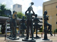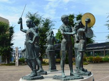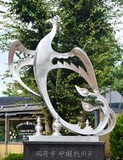 福井市と中国・杭州市は、相互に文化、教育、産業、経済等の交流を図り、永遠の友好発展を念願して平成元年(1989年)11月23日に友好都市提携を行った。 この彫像は、友好都市提携記念と福井市制施行100年を祝して、杭州市から贈られたものである。 これは、中国古来から吉兆とされている想像上の鳥「鳳凰」が、杭州市にある西湖の三つの石塔の間から飛び立とうとする姿で、両市の新しい“たびだち”を表している。 この杭州市民からの誼(よしみ)を永く福井市民に伝えるとともに、福井市と杭州市との友好の輪が世界の平和と人類の繁栄に貢献することを希求して、この像を建立する。