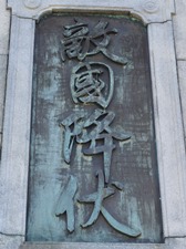 東郷平八郎元帥は、法華経の篤信者であった。明治38年5月、日本海海戦で勝利を収めた後、同年8月19日、加藤友三郎参謀長等と共に博多に寄港し、松下直美福岡市長の案内で亀山銅像とこの日蓮銅像へ勝利御礼に参拝された。 また、大正9年4月8日には、皇太子殿下(昭和天皇)に従って再度両銅像に参拝された。 この銅像は、昭和10年に元帥の偉功を讃え日本海海戦会の有吉憲彰・中野昇外有志が、建立したものである。 当初、前面の銘板には「おろかなる心につくす誠をば みそなわしてよ天つちの神」という歌を付してあった。 これは大正3年4月、元帥が東宮学問所総裁に任命された時の感激を詠まれたものである。 その後、銘板が剥がされていたものを福岡鹿児島県人会・南洲会有志が改修し奉納するものである。 この胸像が日蓮聖人のお側に未来洋々立ち続けることを祈念して止まない。 |