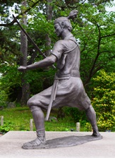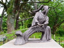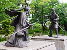 宮本武蔵にとって小倉は最も長く滞在したゆかりの地である。 細川・小笠原両藩の時代を通して7年に及ぶと言われている。 武蔵は慶長17年(1612年)4月小倉を訪れ、細川藩家老長岡(松井)佐渡興長を訪ね、佐々木小次郎との試合の許可を依頼した。長岡佐渡は藩主細川忠興の許しを得て、4月13日に舟島(後の巌流鳥)で立会うことになった。(二天記より) 長岡佐渡の屋敷跡は現在の小倉城庭園である。武蔵はこの屋敷にもとどまったという。 「誠心直道」は、武蔵創始の兵法で二天一流の真髄である。このたび小倉の士が十一代を相伝したので武蔵ゆかりの地に碑が建立された。