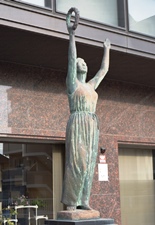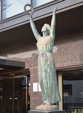 昭和62年(1987年)6月、教育会館建設記念に建立。大村清隆制作。