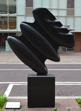 | 彫刻の構成は、人間の連続するエネルギーと静かに自然の流れを受けとめているフォルム(形)で作られており、自然の生命力と人間のエネルギッシュな運動を表現した。 |