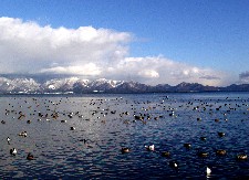 国道115号を下って国道49号に入り、猪苗代湖(標高514m)に沿っていく。