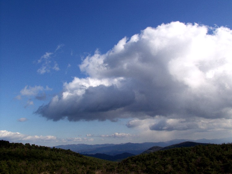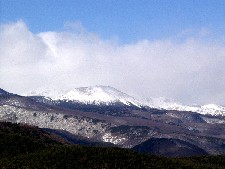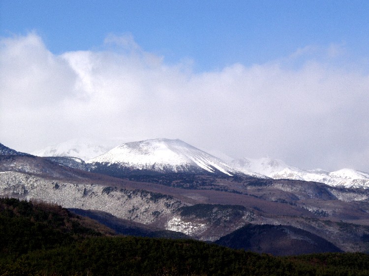 土湯トンネルの方にひときわ白く光る雪山があった。