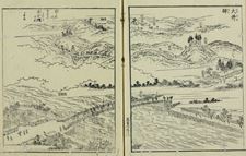 又ほそき流の橋をわたりてゆきつゝ大井川の仮(板)橋をわたり、大井の駅につく。けふは道のほど八里あまりなれば、未のなかばばかりなるべし。