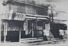 写真(右の写真)は旅籠屋角屋の正面だが、木曽路に多い出桁造となり、取外しのできる格子戸がはまり、軒には講札が多くかけてある。その右側は特殊な方の出入り門となっていた。