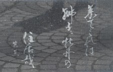 高橋の欄干に芭蕉と木因の句がパネルに刻まれていた。