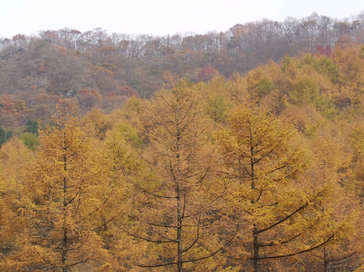 途中で落葉松の黄葉の写真を撮る。