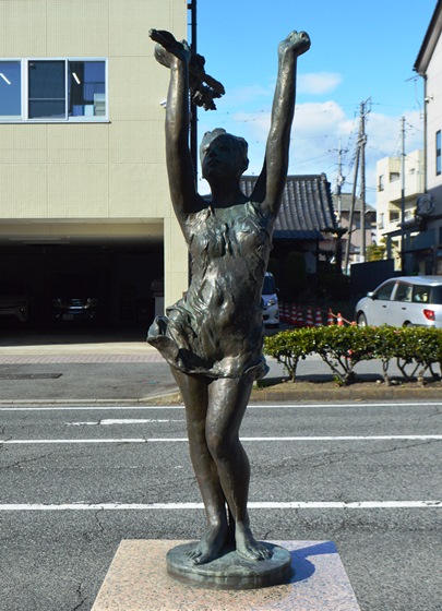 グレースヴィラ・Sの前に「風と遊ぶ」の像があった。