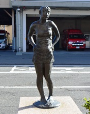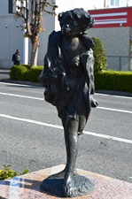 東和銀行渋川支店の前に「出番を待つ踊り子」の像があった。