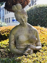 正面玄関前にあった池のほとりに平和の女神像建立。