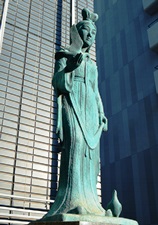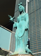 原爆の洗礼を受けた広島市に本拠を置く広島市信用組合が本店新築を記念してここに清純な古代の乙女の像を設置して永遠の平和と繁栄を祈念します。