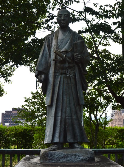 太平洋の波高く、幕末内外多難の時に際し、老中筆頭として国政を総覧し、近世幕藩体制における鎖国の旧弊を断って日米親和の条約を結び、開国への道を求め近代国家への扉を叩く。 阿部正弘は、福山藩阿部家七代の藩主にして、弱冠25歳で閣老に任じ、爾来十有四年、その開明的な政策を推進し、国政を整え、もって国外に対応せり。 福山藩主としては、庶民の中に人材を登用し、藩政を改革し、教育に明日の世代の形成を託して藩校誠之館を開き、進んで西欧の学術をも取り入れ、その後の福山文化の発展に貢献す。 市制60周年の記念すべき年にあたり銅像建立を発起し、先人の遺徳を偲び明日への躍進を誓う。 |