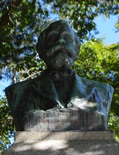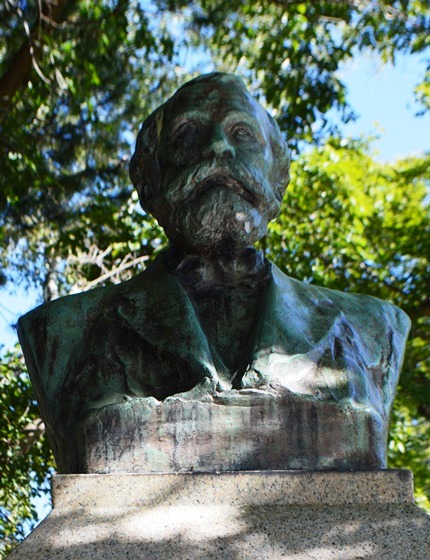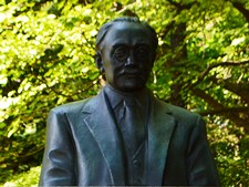 第二次世界大戦前の日本を代表する国際人・教育者であり、「五千円紙幣」の肖像としても知られる新渡戸稲造博士(1862―1933)は、明治14年、二期生として札幌農学校を卒業した。博士にとって札幌は、キリスト教に基礎をおく人格と、広い学識を身につけた「精神的誕生地」である。卒業後の一時期、開拓使御用掛に籍を置き、黎明期の北海道開拓に力を尽くしたが、学問への情熱断ちがたく、明治16年、東京大学に再入学した。さらに、アメリカ、ドイツに留学し、米国人の妻・メリー夫人を伴って帰国した博士は、明治24年から7年間、母校の札幌農学校教授として、当時閉校の危機にあった農学校の立て直しと学制改革に尽力し、のちの北海道大学の基礎を築いた。勤労青少年のための教育施設である遠友夜学校の創設(明治27年)も、農学校教授時代の貴重な遺産である。その後、博士は京都帝国大学教授、第一高等学校校長、東京帝国大学教授、東京女子大学学長などを歴任し、人格、社会性、教養を重視した教育によって戦前・戦後の教育界に多大な影響を与えた。さらに、名著『武士道』による日本の精神文化の紹介、国際連盟事務次長としての平和文化活動は、博士の名声を国際的に高めることになった。 この顕彰碑は、北海道大学が札幌農学校創立から数えて120年を迎えるのを記念し、卒業生を中心とした数千人の篤志家の浄財によって建立された。碑文の一句は、博士の英文著作から引用した。「太平洋の橋にならん」とした、若き日の理想を語ったものであり、サインは直筆である。 |