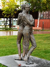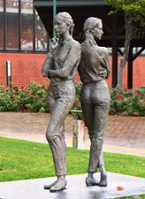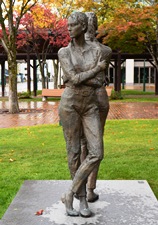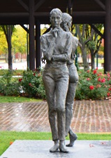 岩見沢市の未来を担う子どもたちへの熱い思いが込められた彫刻家「朝倉響子」さん制作の彫刻像「友だち」です。
