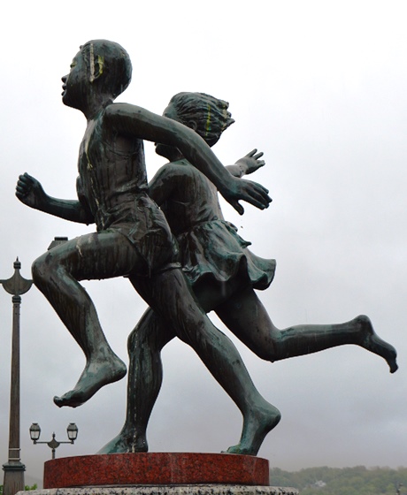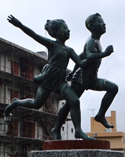 明治13年、北海道で最初、日本で3番目の鉄道が小樽の手宮と札幌の間に開通しました。当時は左に描かれているアメリカ製の古典SLが活躍していました。 明治36年には右に描かれている旧小樽駅が完成、函館とも鉄道で結ばれました。港町小樽は、これで名実ともに海陸の拠点となったのです。活溌な貨物の動きにこたえて、町の通りでは馬車や人力車、冬には馬ソリが威勢良く走っていました。昭和9年には北海道で最初の鉄道省栄バスが、やはり手宮と札幌の間に走り、庶民の足として客馬車も人気を集めていました。 小樽市 |