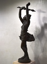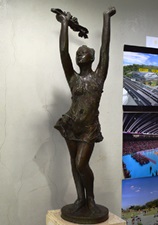 姫路市立総合スポーツ会館正面で大空に向ってそびえるモニュメントは、天に向って伸びあがり、大地から身をおどらせる、自由感、生きるよろこびを象徴してあります。スポーツのよろこびは勝ち負けではなく、無条件に心身を躍動させ、天と地の間にいのちを開ききることです。その意味で「躍動」と名付けられました。