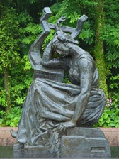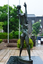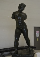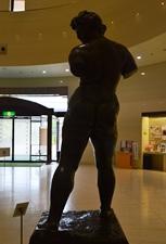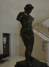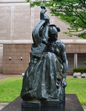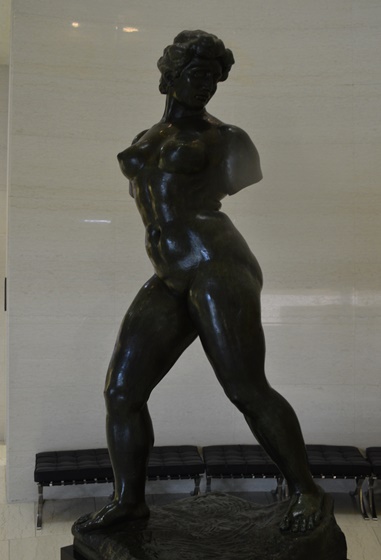 | 「とらわれのアクション」は、マイヨールの初期の代表作のひとつで、フランスで1848年に起こった二月革命の首謀者のひとりとして、36年もの長い獄中生活を送った社会主義者ルイ=オーギュスト・ブランキ(1805−1881)を讃える記念碑である。マイヨールは、様々な主題を裸婦像を通して表現しているが、本作も束縛に抵おうとする人物の力強さ、自由を希求する意志の強さが、身をよじり地面を踏みしめるポーズの重厚な裸婦像によって表現されている。本作は腕にある完成像に到る前段階の最終習作。ミケランジェロの《奴隷》や、ロダンの《歩く人》からの影響も指摘される。公共の作品として注文され、マイヨールへの注文取付けには、友人のドニも深く関わっている。 |