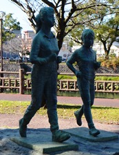 甲突川左岸緑地に「陽光を浴びて」の像があった。