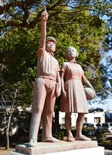 十四才立春式は平塚ロータリークラブの提唱によるものです。 少年期から青年期への門出に当る十四才の少年少女に、明日の日本を支える者は自分たちであるという自覚を促し、良識ある国際的社会人たらんと立志することを勧め、その基本として先ず健康なれ、と毎年立春の日に呼びかけるのが十四才立春式です。 平塚ロータリークラブは創立10周年記念事業として、この式の趣意の具現化を決議し、彫刻家亀貝保氏に嘱し、ここに傑作立志の像を得、昭和46年立春の日を卜して、これを贈るものであります。 |