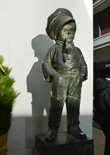 この「マドロス少年」は北欧の港町で見つけた置物をモチーフにブロンズ像を作成し昭和43年11月に設置したものです。 「マドロス」とはオランダ語で「船員」のこと。 だぶだぶの船員の服を着て、マドロスパイプをくわえ、大人のまねをして少しわるぶっている少年の姿が港町ヨコハマによく似合うと思い、 「マドロス少年」と名づけました。 お待ち合わせのシンボルとして、ご愛顧頂ければ幸いです。