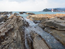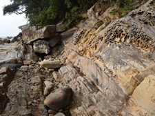この海岸は2000万〜1500万年前の砂岩からなる海食台地で、浸食によってできた怪岩奇岩が続いています。特に見残し海岸では、この地域独特の蜂の巣のように蝕された奇岩が連続しており、その景観は自然の芸術といわれています。一方竜串海岸では、節理の発達した奇岩が競うようにせり出していて、その上を歩くとまるで恐竜の背骨を歩いているかのように感じます。岩の形によって名前がつけられていますが、それは、見残しとはまた違ったユーモアがあります。