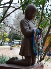 かの第二次世界大戦のさなか、1945年8月6日広島に、8月9日長崎にそれぞれ原子爆弾が投下され、一瞬にして20数万の市民の命が奪われました。 また、生き残った37万余の被曝者も原爆の放射線による障害にて、一生苦しむことになりました。 人類史上初めて生じた、この悲しい惨めさを人間が生きている限り痛ましいこととして訴え続けなければなりません。 ここに県内の犠牲者を悼み、このような核兵器は地球上から絶滅させ、世界の永久の平和を切に祈念して「いのり」を建てるものであります。