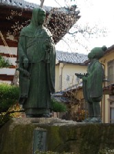 顔も知らぬ父苅萱上人を訪ねて高野山に登った幼い石童丸が無明の橋にて父上人と対面した情景を銅像にしたもの。