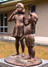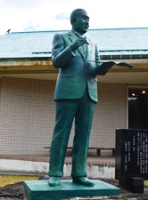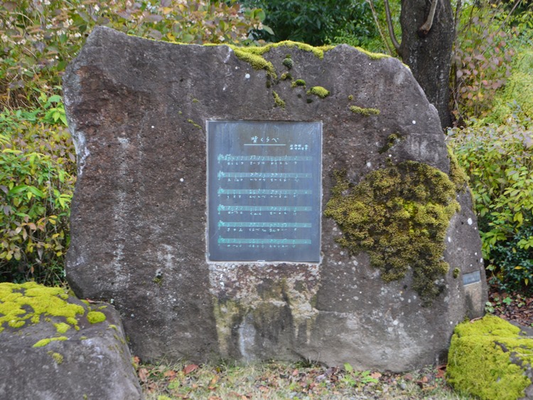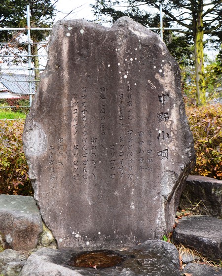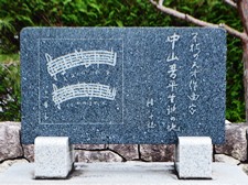 作曲家中山晋平先生は明治20年3月22日この地に生れた。 先生は日本的旋律による近代的国民音楽を創案開花させ、 「カチューシャの唄」を始めとする凡そ」6000曲は、みな我等の情操を培う至宝である。 しあわせで」わが國國民音楽の発展を祈念しつゝこれを建てた。 |