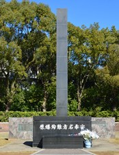 昭和20年8月9日午前11時2分、一発の原子爆弾が、この地の上空500メートルでさく裂し、一瞬、73,800人の尊い生命を奪い、76,700人の負傷者を出した。同時に、家屋の焼失11,500戸、全壊又は大破したもの6,800戸、この地を中心として、2.5キロメートルに及ぶ地域が壊滅した。その惨状は筆舌に尽し難い。 ここに原子爆弾落下の中心地を示すためこの碑を建てる。 |
