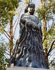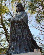 今日の平和日本の繁栄や平和都市長崎の発展を考えるとき、昭和20年(1945年)8月9日11時2分の原子爆弾の直爆により亡くなられた方々のうち原子爆弾の直爆により亡くなられた方々のうち、約7割の方が子供や女性、及び老人であったことを永久に忘れてはなりません。 この碑は、本市出身の彫刻家、富永直樹氏に依頼して制作したもので、原爆の悲惨さと、被爆により亡くなられた多くの方々のご冥福を祈り、ひいてはこの尊い犠牲が今日の平和の礎となったことを念頭におき、偉大なる母の慈悲心と、永久に平和であれと念じ、あたたかく深く母の胸に眠る傷心の子供の姿を配することによって、21世紀にはばたく日本の未来を表現しています。 子供の姿はあの日の日本の姿を、母の姿は日本を支える世界の国々の姿を表し、この支えを受けながら今日の平和な日本の礎が築かれたことを、私たちは忘れてはならないという制作者の思いが込められています。 原爆落下中心地地区は、被爆50周年の大きな節目を機に「祈りのゾーン」として、世界へ向けて被爆の悲惨さを伝え、被爆者の冥福を祈るとともに、核兵器廃絶と世界恒久平和を祈念する場とするため、平和公園整備事業として整備を行ないました。 この碑は、原爆落下中心地地区を「祈りのゾーン」として、より充実・強化し、世界平和の発信地とするため、「被爆50周年記念事業碑」として、ここに建立したものです。 |