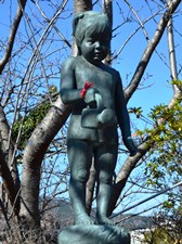 平和の母子像男たちが戦場に向ったとき、女たちもまた勝利を祈った。しかし、広大な大陸や、はるかな海の島々では、数知れない人々の血が流されていった。そして遂に1945年、沖縄での惨劇についで、8月6日広島、9日長崎への非道な原子爆弾攻撃に至った。 ああ、あの閃光の下で、幾万もの男女、無数の母と子が灼かれ、ひき裂かれ息絶えた。 あれから40余年、いま第2の核戦争へとシグナルは点滅し、地球は破滅の渕にある。 ああ、あの閃光の下で、幾万もの男女、無数の母と子が灼かれ、ひき裂かれ息絶えた。 戦争も核兵器も許してはならない。命ある全てのものが生きる、この緑の大地を、地球を守ろう。 それぞれの「あの日」を生きつづける女たちの、たぎる思いをひとつにあわせ、再び、あの惨禍をくり返さぬ誓いをこめて、ここにこの像を建てる。 |