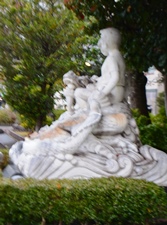 昭和57年7月23日、長崎の街は想像を絶する集中豪雨により、死者、行方不明合わせて262人という大惨禍を受け、美しかった中島川石橋群も6橋が流失し、3橋が半壊しました。 この碑は、中島川に石橋を架けるなど古くからゆかりの深い中国に依頼して製作した水害復興記念碑です。 像は、不思議な能力を持った伝説上の中国の少年と元気な日本の少女が力を合わせて、風を呼び雨を呼ぶ巨大な龍を従わせている姿で、治水と日中の友好を象徴しています。 |