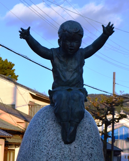 奈良市公納堂町の歩道緑地帯に「今昔のひだまり」の像があった。