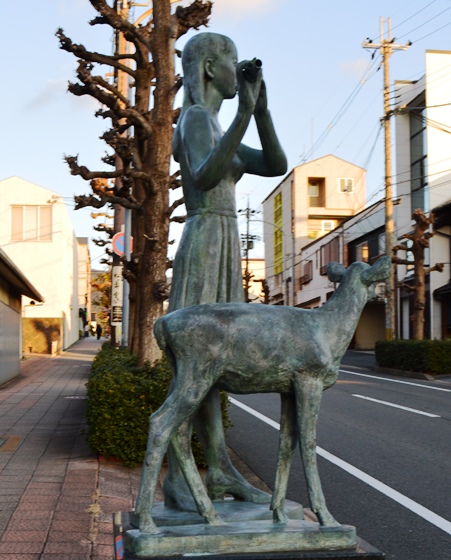 奈良市北室町の歩道緑地帯に「平和の調べ」の像があった。