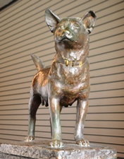 昭和12年(1937年)11月、最初の忠犬タマ公像完成。 昭和34年(1959年)4月10日、皇太子御成婚記念日を祝して復元。渡辺徹制作。 昭和53年(1978年)、渡邊徹没。 昭和57年(1982年)、上越新幹線開通を記念して建立。林昭三制作。 |