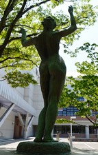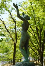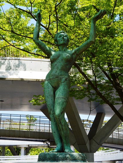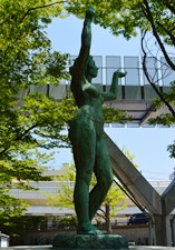 音楽文化会館前の「竪琴を抱く女神像」があった。