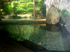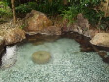 泉質は単純温泉(緩和性低張高温泉)、泉温は54.5℃。PH8.0。