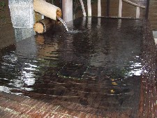 泉質はカルシウム・ナトリウム−硫酸塩温泉(低張性・弱アルカリ・高温泉)。pH8.23。泉温は46.0℃。 |