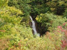 その昔、長野県栄村上野原の熊取名人善吉さんが獲物を追ってこの滝までやって来ました。獲物(熊か、かもしか)が向こう岸に渡り、振り返ると、今丸木橋だと思って渡って来たのは、恐ろしいことに、なんと大蛇だったのです。善吉さんはその時の恐怖を子や孫に語り伝え、この滝に近寄らせなかったということです。