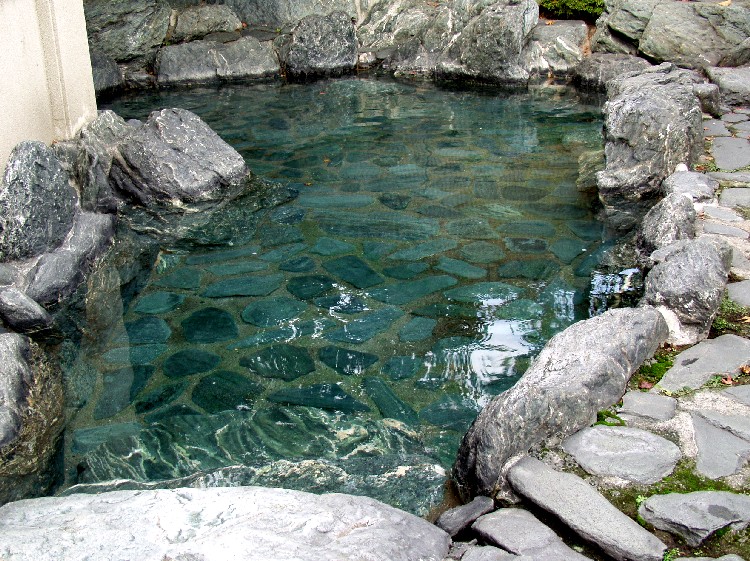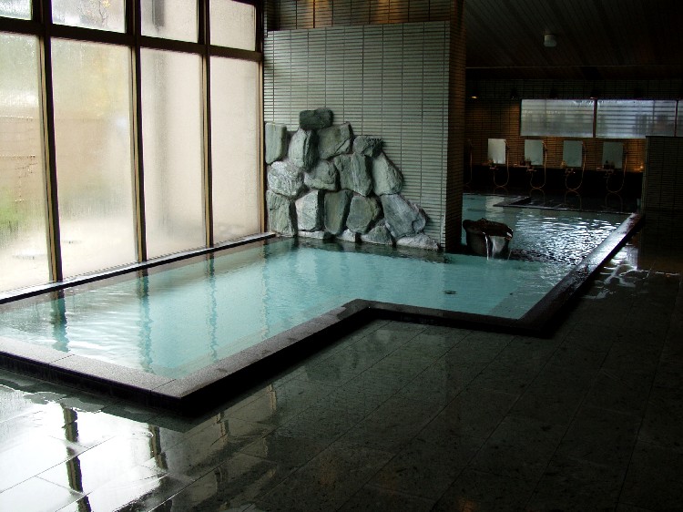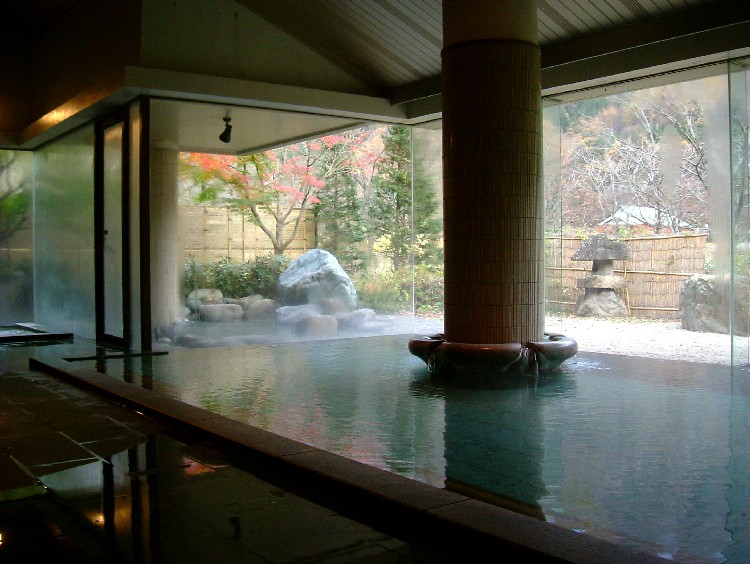 湧出量毎分300リットルの天然温泉を客室にも引いている。循環システム等は使用していないということだ。 日帰り入浴で入れるのは男子大浴場「湯ノ沢」と露天風呂「水の音」だけだが、宿泊者には貸し切り風呂「音羽の湯」が3つあって、料金は2,500円〜3,000円。 |