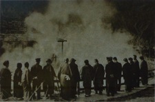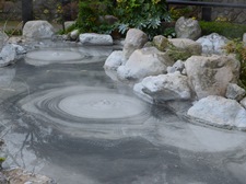 鬼石坊主地獄の歴史は古く、文献に表れたのは、天平5年(733年)頃書かれた『豊後風土記』の玖倍理湯の条に「口の経、丈餘、湯の色黒く、泥常に流れず」とあり、元禄7年(1694年)に訪れた貝原益軒は「豊国紀行」に、「円内坊地獄とて熱湯あり泥土なり」と記し、寛政7年(1795年)には、脇欄室が「函海魚談」で、「泥を躍し、湯を起こし」と述べました。 このように形容された当時の地獄は田畑の所々に点在していましたが、熱泥により稲が育たず、人々の暮らしもできない、まさに地獄の土地でした。により稲が育たず、しかしその奇異なる自然現象は、逆に人々の注目を集め、見物客が畦道を歩いて見て廻りはじめたのです。それが「地獄見物」の最初の景色でした。 日露戦争以後、その人気に拍車がかかり、明治43年(1910年)に、我が国で初めての入場料(2銭)を取る「地獄見物」が、この地の「海地獄」から始まると、ついで「血の池地獄」、「坊主地獄」「八幡地獄」「紺屋地獄」が地獄遊覧を開始し、大変な人気を呼び、最大数十ヵ所の地獄巡りにまで発展しました。その中で当時「新坊主地獄」とも呼ばれていた、ここ鬼石坊主地獄は、粘土質の泥中に湯玉が次々と湧き上がる「熱泥地獄」と噴気を勢いよく吹き上げる「間欠泉」の二種類の地獄がありました。 上記写真は、大正末期の鬼石坊主地獄の様子です。当時から自動車の便が開け、昭和に入ると、遊覧バスの運行もはじまり、国内はもとより海外からも多くの見物客を招く、一大観光地となったのです。 その後、時勢により一時閉鎖されましたが、復活を願う内外の多くの皆様のご支援により、平成14年11月「鬼石坊主地獄」として、再開園する運びとなり、歴史ある地獄がここに蘇りました。 |