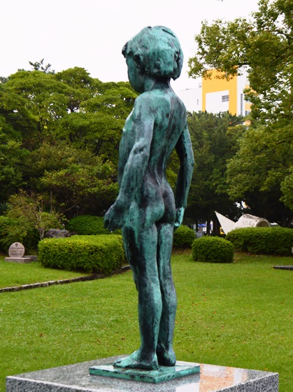 昭和29年(1954年)4月、別府市制30周年記念として小野田セメント(株)より寄贈され、別府駅前のシンボルとして設置。中川為延制作。 昭和42年(1967年)11月、別府駅高架に伴い同駅南広場に移設。 昭和42年(1967年)11月22日、中川為延死去。享年63才。 昭和63年(1988年)11月、別府駅前整備事業により再度この地に移設。 |