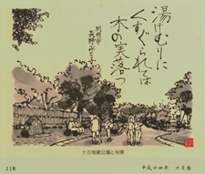 湯ぶねのゆほのあたゝかみ鰐の群 そが故郷を忘れたるらし 信綱 六十七才 詠 九十二翁 書 文化勲章第一回受章者日本學士院会員日本藝術院 会員 佐佐木信綱博士は昭和十三年四月六十七才 のをり來別この地獄にて鰐の歌七首を詠まれた 先年熱海に博士を訪問の時この歌あるを指示され 帰別後鬼山地獄の主人宇都宮則綱氏にしらせたるに 歌碑建設のはこびとなったのである 昭和三十八年六月 八雲短歌会主宰 田吹繁子 |