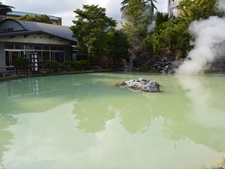 )今の「鉄輪」を訪れ、荒地獄に悩まされているのを知り、大蔵経を一字一石に書写して地獄に埋め、荒地獄を静め、一大温泉郷開発の礎を築いたといわれているそうだ。